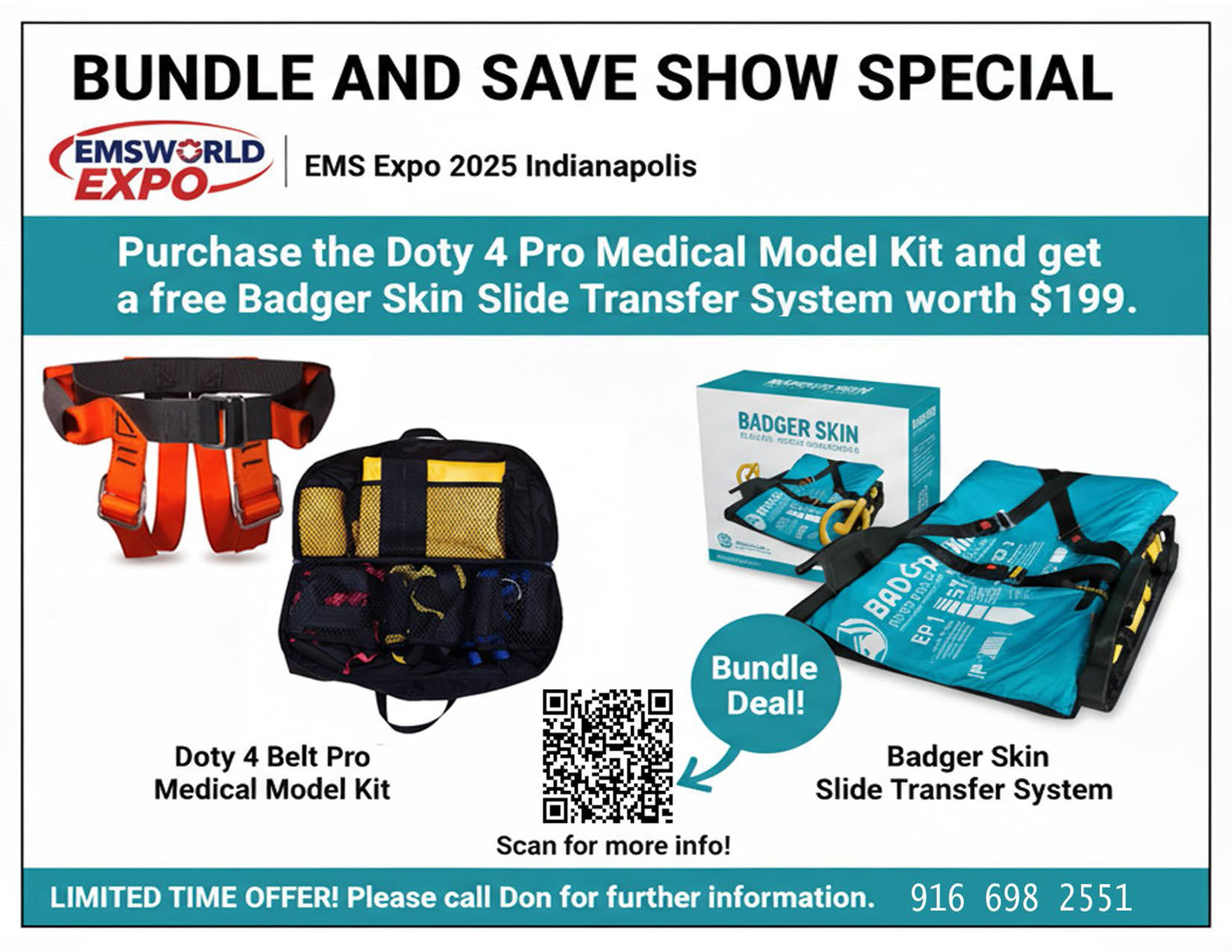 Purchase the Doty Belt 4 Belt Kit with the M1 Badger Skin Slider and receive a FREE M2 Badger Skin Slider System. It's the ultimate system for patient handling and worker injury prevention. Call for offer.